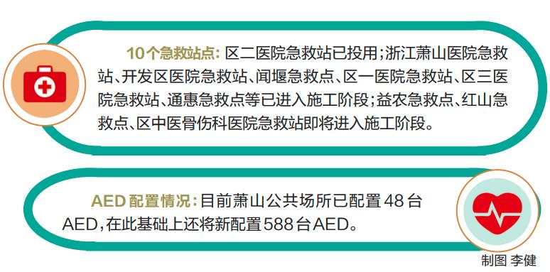 為有效管理AED,蕭山也將籌建一個(gè)AED管理平臺(tái),通過(guò)該平臺(tái)與區(qū)醫(yī)療急救指揮中心所使用的的醫(yī)療優(yōu)先分級(jí)調(diào)度系統(tǒng)有效結(jié)合,一旦發(fā)生市民心臟驟停的情況,通過(guò)撥打120急救熱線,120工作人員將第一時(shí)間獲取患者就近的AED位置信息,為患者爭(zhēng)取寶貴的急救時(shí)間。