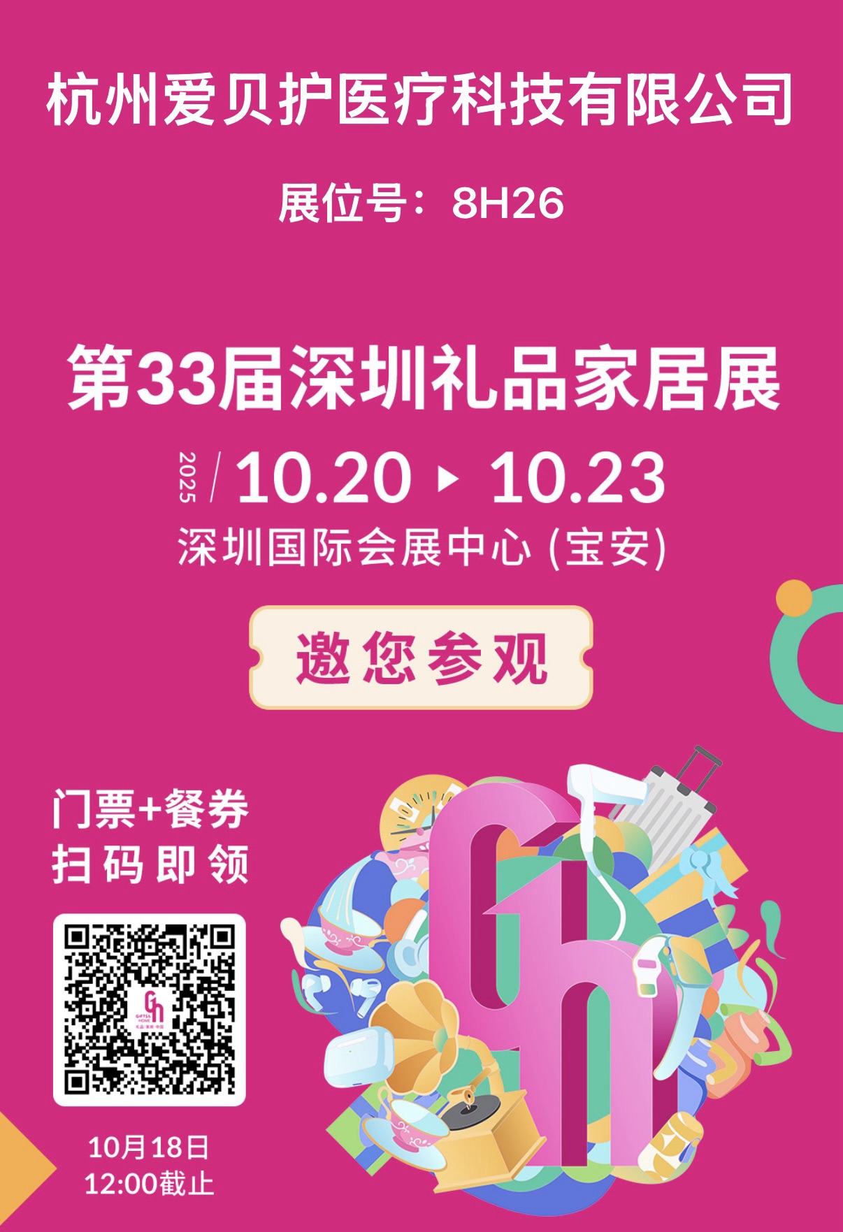 展會名稱:第33屆中國(深圳)國際禮品及家居用品展覽會 展會時間:2025年10月20日-23日 展會地址:深圳寶安區(qū)福海街道展城路1號——深圳國際會展中心(寶安新館) 愛備護展位號:8號館8H26。 禮送安全,傳遞關(guān)愛,愛備護期待您的光臨!