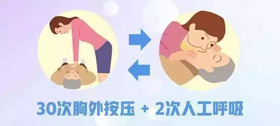 第三步:將患者下頜抬起,頭部后仰,開通氣道。每做30次胸外心臟按壓,交替進行2次人工呼吸。